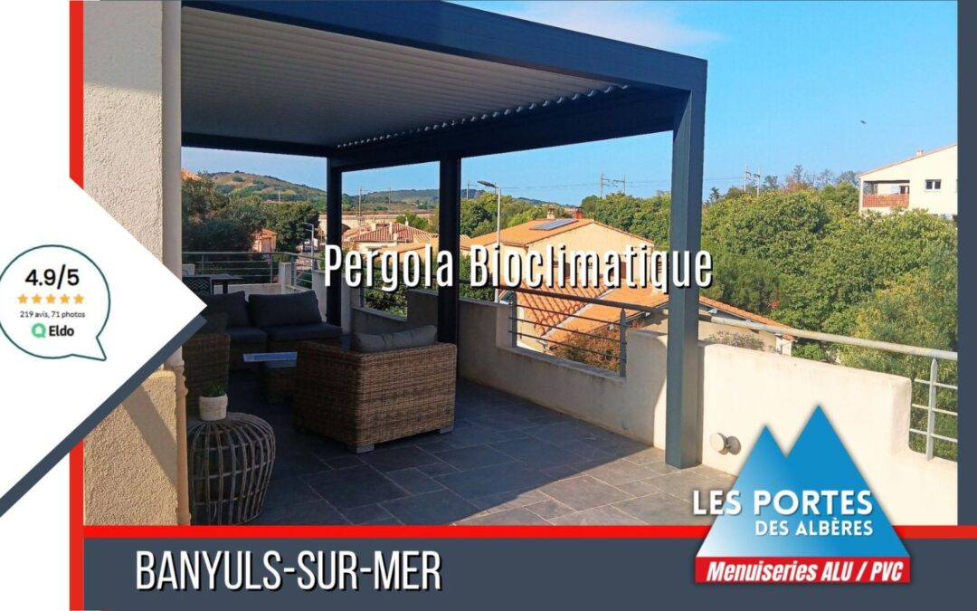 Pergola Bioclimatique à Banyuls-sur-Mer (66) Non classé A Banyuls-sur-Mer, installation d’une magnifique pergola bioclimatique ! Structure gris anthracite RAL (7016) et lames blanches. Nos clients ont choisi de compléter leur pergola par 2 stores ZIP pour plus de confort !
