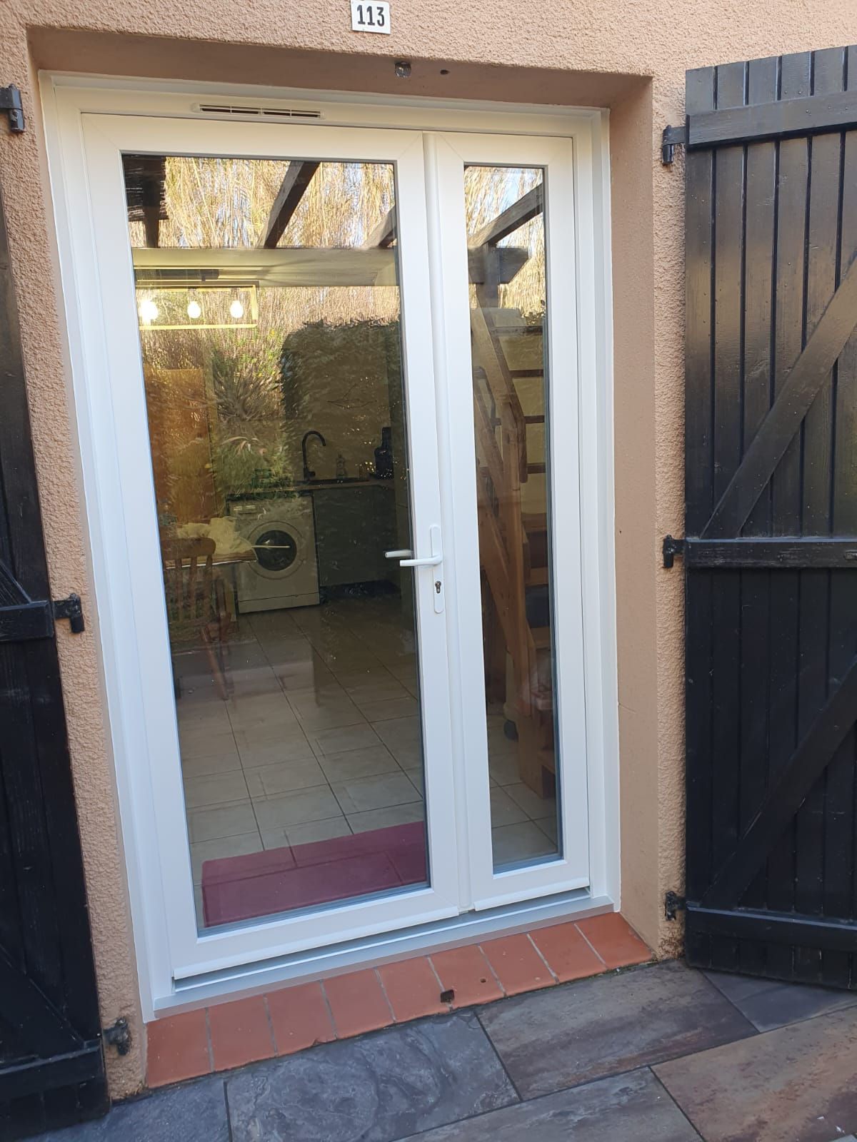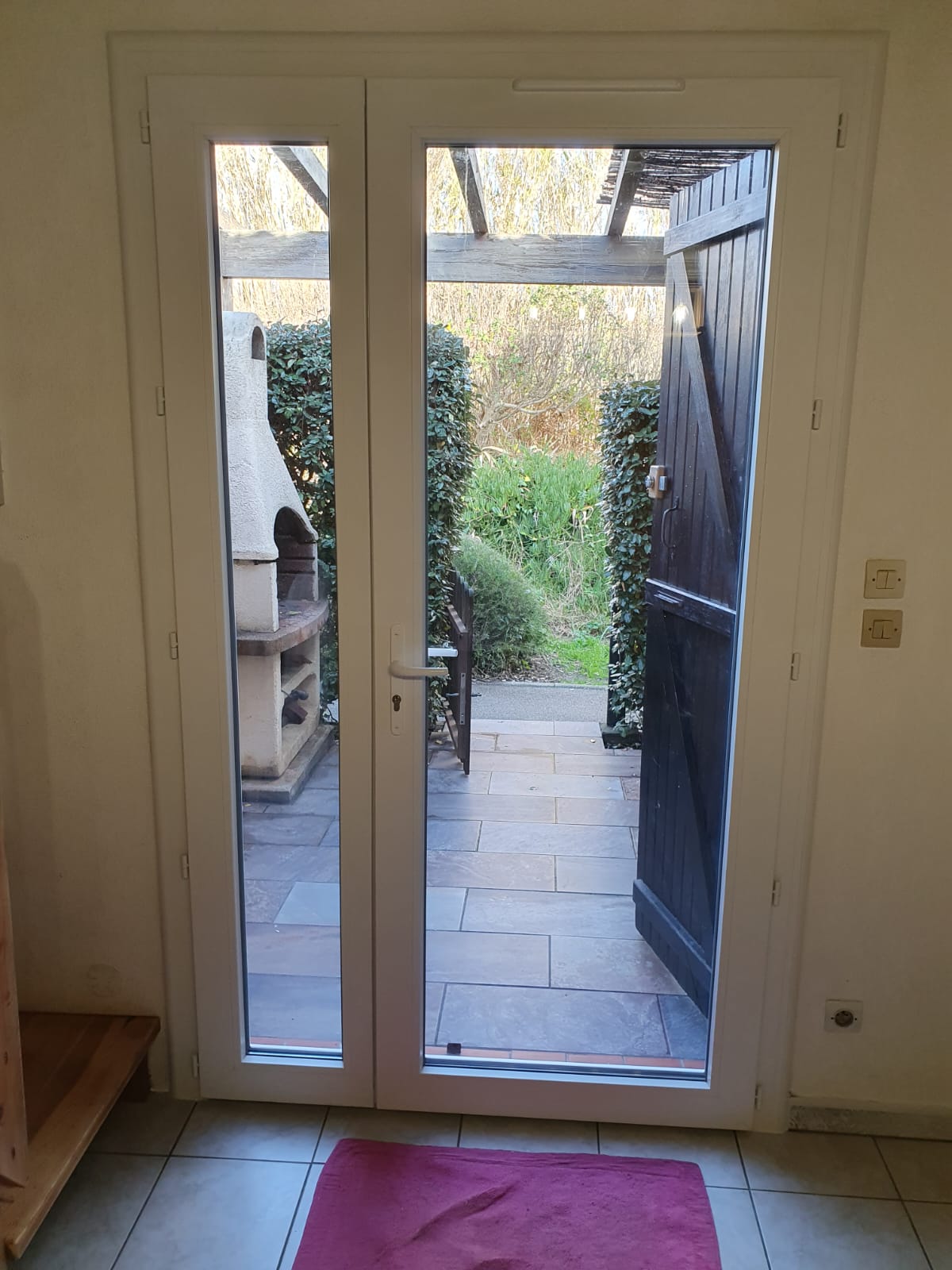 A l’entrée, la porte-fenêtre a été réalisée en ouvrants 2 vantaux asymétriques pour un passage plus confortable.